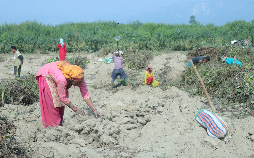 सर्लाही। माघेसङ्क्रान्ति नजिकिएसँगै सर्लाहीको बागमतीका किसानलाई तरुल खन्न भ्याइनभ्याइ भएको छ । पुसको दोस्रो हप्ता लागिसक्दा सङ्क्रान्तिका लागि तरुल निकाल्ने चटारो बढेको बागमती नगरपालिका–५ टेकानीका तरुल किसान दलबहादुर लुङ्गेलीले बताउनुभयो । लुङ्गेलीले बागमती खोला बगरमा पाँच कट्ठा खेतमा तरुल लगाउनुभएको छ ।