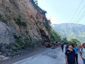 सडकमा ठुला ढुंगा खसेका छन् । सडक विभागसँगको समन्वयमा दुईवटा जेसिबीको सहायताले अवरोध पन्छाउने काम भइरहेको राजमार्ग सुरक्षा तथा ट्राफिक व्यवस्थापन कार्यालय,रामनगरका एसपी नरेश सुवेदीले बताए ।