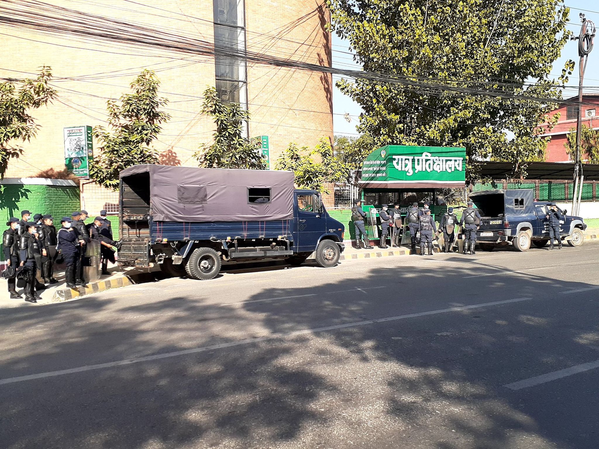 काठमाडौं। नेपाल बार एसोसियसनले प्रधानन्यायाधीश चोलेन्द्रशमशेर जबरालाई सर्वाेच्च अदालतको गेटमै रोक्ने रणनीति लिएपछि स्थानीय प्रशासनले सुरक्षा व्यवस्था कडा पारेको छ । सर्वाेच्च अदालत क्षेत्रमा बिहानैदेखि सुरक्षाकर्मीको बाक्लो उपस्थिति छ ।