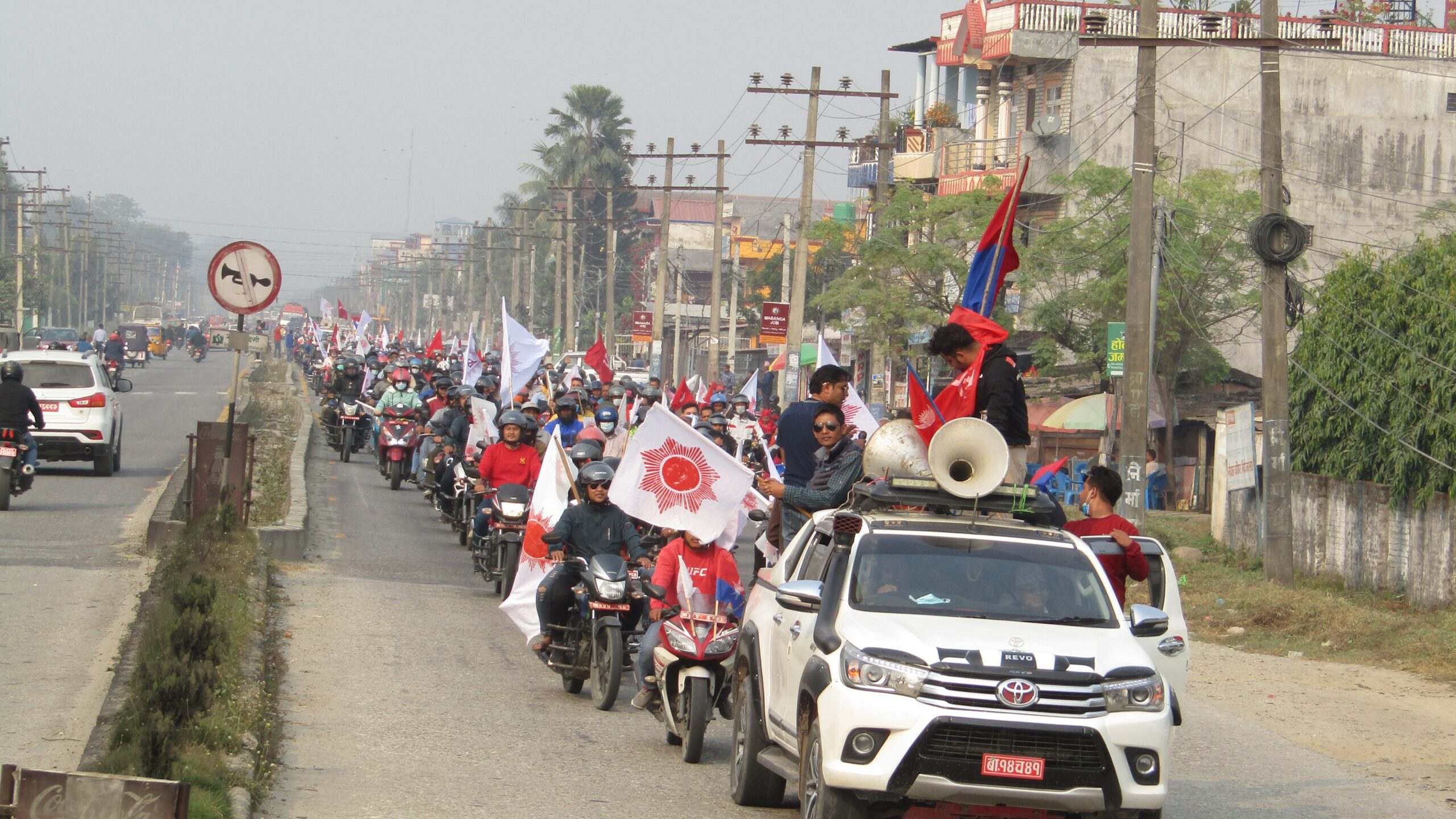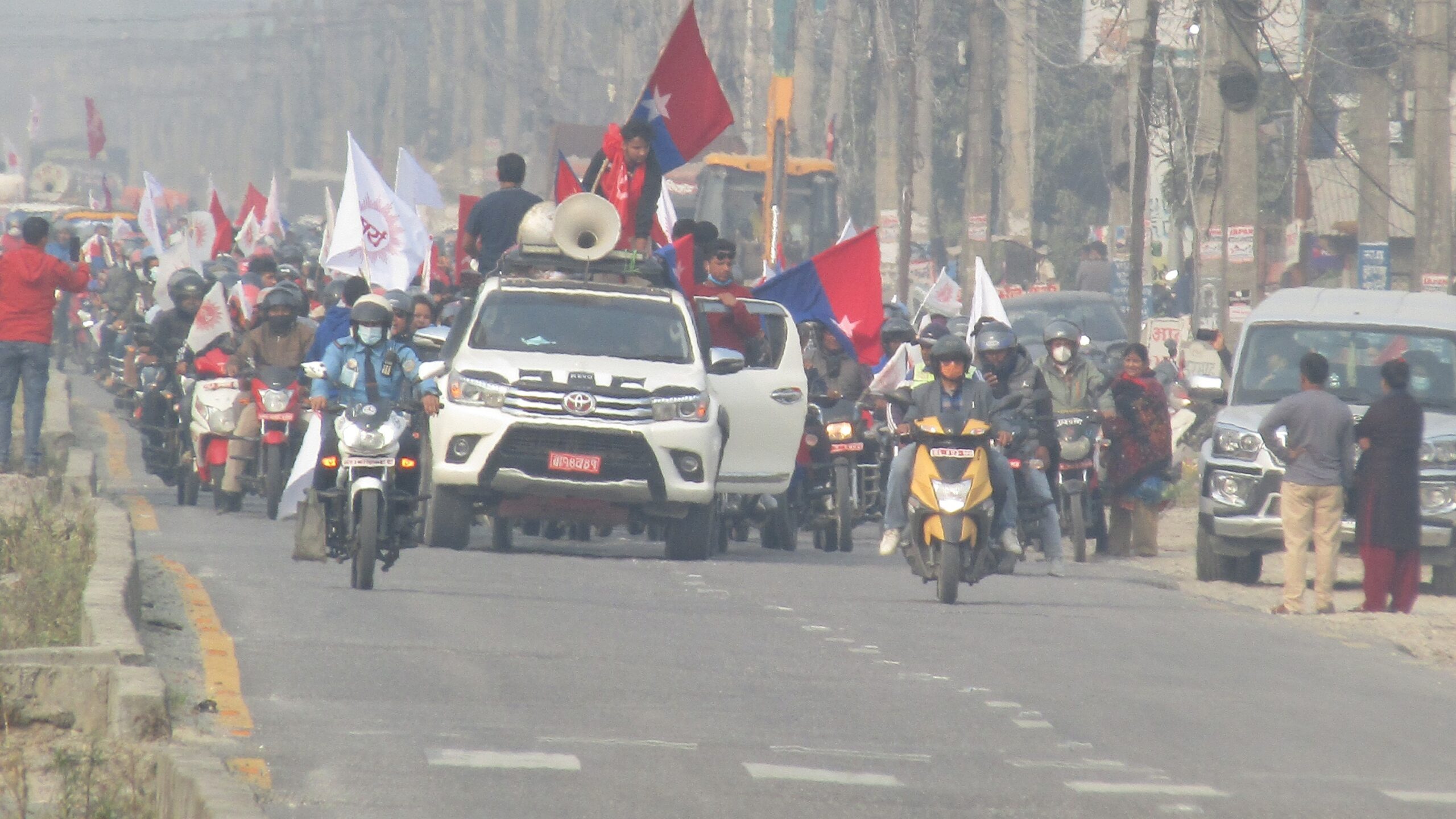 नेकपा एमालेको केन्द्रीय निर्देशन अनुसार आज नवलपुर, मकवानपुर सहित देशका मुख्य सहरहरुमा युवा संघले मोटरसाइकल ¥याली निकालेको छ ।