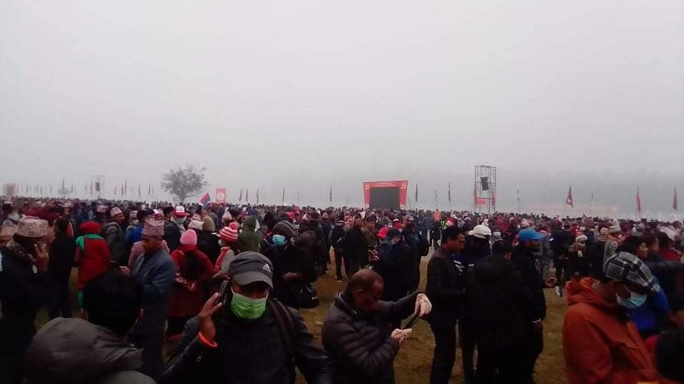 नारायणी नदी किनारमा महाधिवेशनको आज १२ बजे उद्घाटन हुनेछ, तर बिहानैदेखि नारायणी नदी किनार भरिसकेको छ । नेता तथा कार्यकर्ताहरू नारायणी नदीकिनार पुगेर ठाउँ ओगटीसकेका छन् ।
