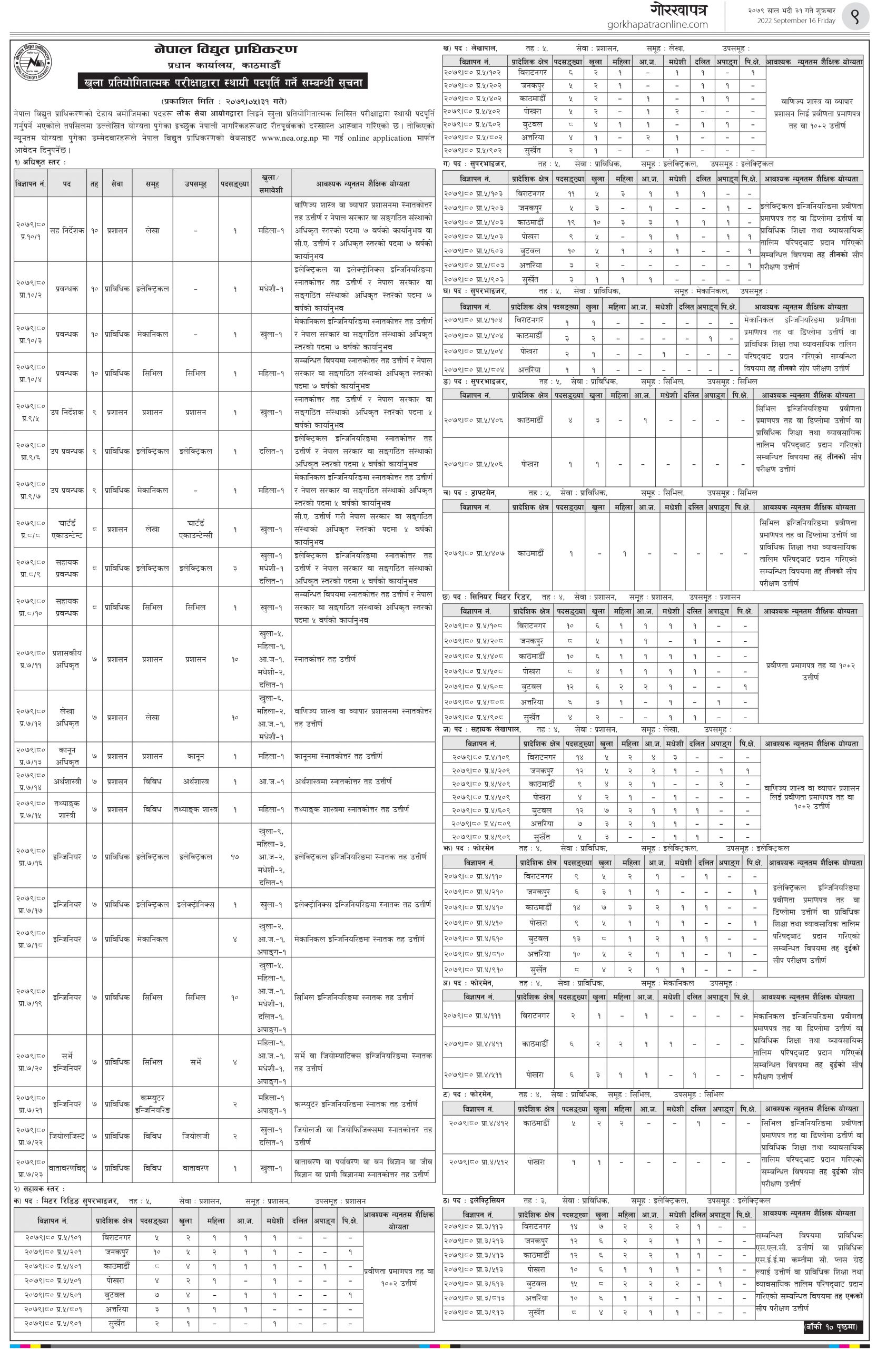 काठमाडौं। नेपाल विद्युत प्राधिकरणले ठूलो संख्यामा स्थायी कर्मचारी भर्ना गर्ने भएको छ । लोकसेवा आयोगबाट लिइने परीक्षाका लागि प्राधिकरणले शुक्रबार दरखास्त आह्वान गरेको छ । प्राधिकरणले सह–निर्देशकदेखि मिटर रिडरसम्मको माग गरेको छ ।