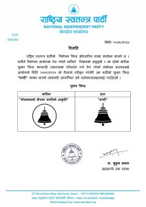 चुनाव चिह्नसम्बन्धी व्यवस्थामा परिवर्तन गर्न निर्वाचन आयोगमा रास्वपाले पेश गरेको संशोधन प्रस्ताव स्वीकृत भएसँगै चुनाव चिह्न ‘घण्टी’ कायम भएको हो ।