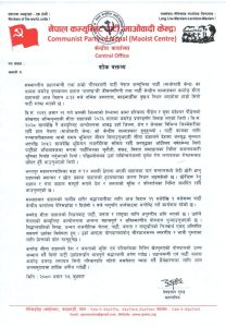साथै प्रधानमन्त्री एवम् पार्टी अध्यक्ष कमरेड प्रचण्ड लगायत परिवारप्रति गहिरो समवेदना व्यक्त गर्दै धैर्यधारणका लागि आम जनसमुदायमा हार्दिक अपिल गरिएको शोक वक्तव्यमा लेखिएको छ ।