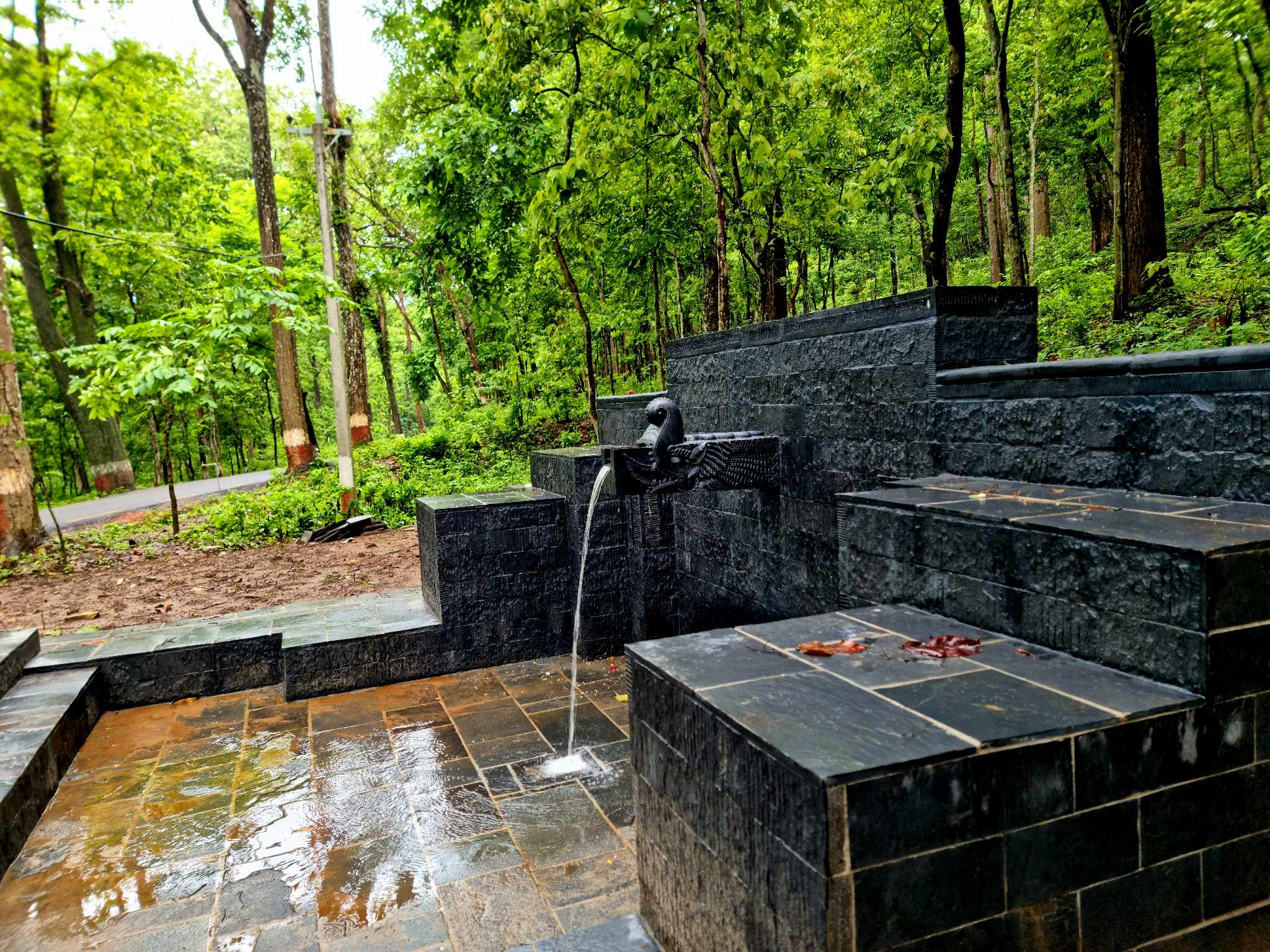 ढुङ्गेधारामा तीन किलोमिटर टाढाबाट मुहानको पानी ल्याइएको छ । यो क्षेत्रमा खानेपानीको धारा नहुँदा यात्रु र वन्यन्तुले सहजरुपमा पानी खान पाएका थिएनन् । “यो बाटो प्रयोग गर्ने बटुवा, मर्निङ वाकमा जाने स्थानीय र मलामीलाई खानेपानीको अभाव थियो, इन्जिनियर पौडेलले भन्नुभयो”, “ढुङ्गेधारा निर्माणपछि बाँदरलगायतका वन्यजन्तुले पनि पानी खान पाउनेछन् ।” आँपटारी चोकदेखि देवघाटसम्मको बाटोमा कहीँ पनि पानीको व्यवस्था नभएका कारण ढुङ्गेधारा निर्माण गरिएको उहाँले बताउनुभयो । ढुङ्गेधारा निर्माणपछि यात्रुले मूलको पानीले प्यास मेटाउन पाउने छन् भने देवघाटको पवित्र जल लैजान पाउने छन् । ढुङ्गेधारामा मूर्ति निर्माणलगायतका केही काम निर्माण गर्न बाँकी रहेको उहाँले बताउनुभयो । ढुङ्गेधारामा काठमाडौँबाट ढुङ्गा ल्याइएको हो भने मकवानपुरका कालीगढले काम गरेका हुन् । इन्जिनियर पौडेलका अनुसार यो चितवनकै पहिलो र एकमात्र ढुङ्गेधारा हो ।