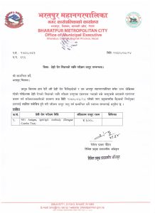 ‘देशैभरी डेङ्गी रोग फैलिरहेको छ । यसमा महानगरपालिकासमेत उच्च जोखिममा छ । तर, रोग निदानका लागि गरिने परीक्षणमा एकरुपता नभएको गुनासो आएपछि सरोकारवालाहरुसँगको बैठकको निर्णय अनुसार अधिकतम दस्तुर रकम ६ सय लिन अनुरोध छ’–उहाँले जारी गरेको विज्ञप्तीमा भनिएको छ । उहाँले सबै स्वास्थ्य संस्थालाई लागु गर्न समेत अनुरोध गर्नुभएको छ । डेङ्गी परीक्षण गरेको कुनै ल्याबले भरतपुरमा हजार रुपैयाँ लिने गरेका छन् ।