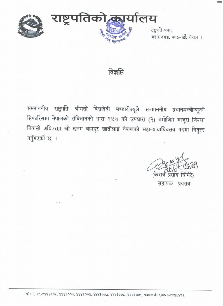 महान्यायाधिवक्तामा खम्म बहादुर खाती नियुक्त