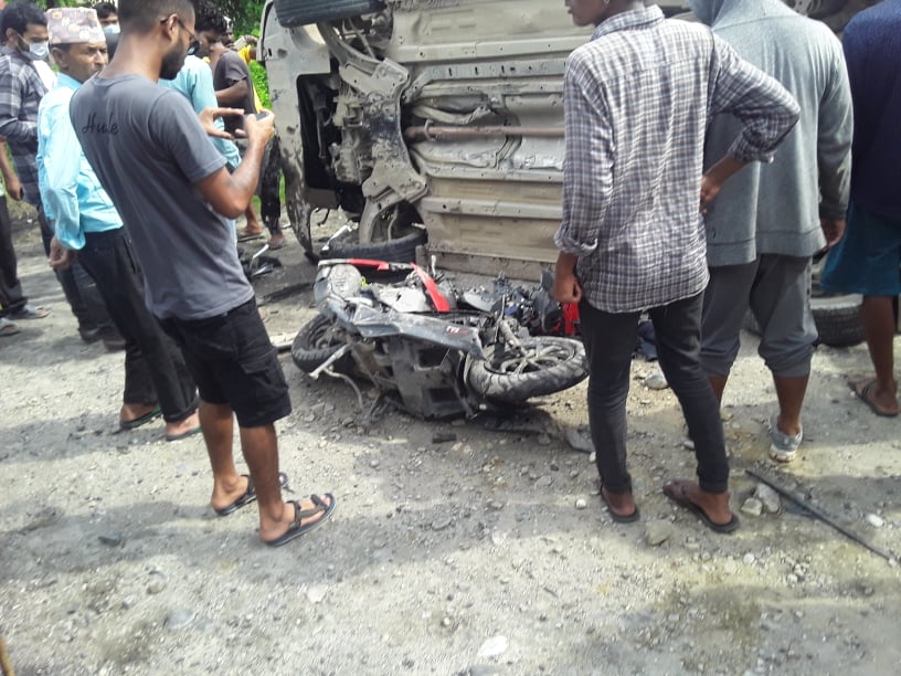 राप्तीमा कारले दुई स्कुटरलाई ठक्कर दियो: पांँच