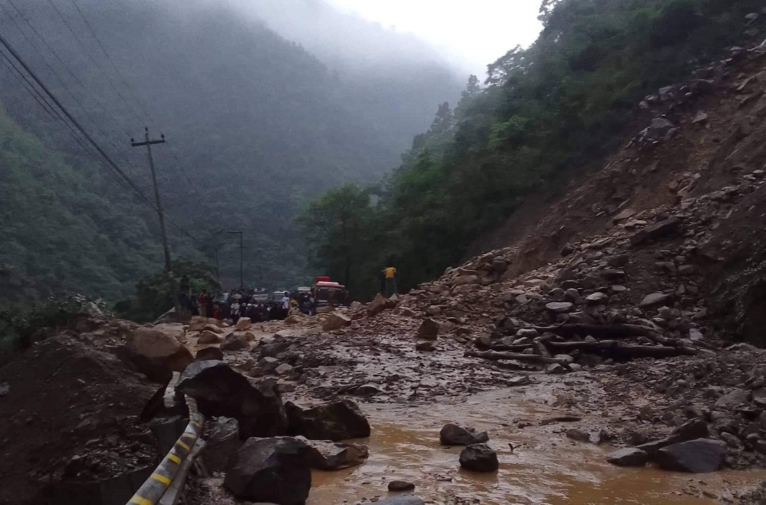 पहिरोका कारण भीमदत्त राजमार्ग अवरुद्ध