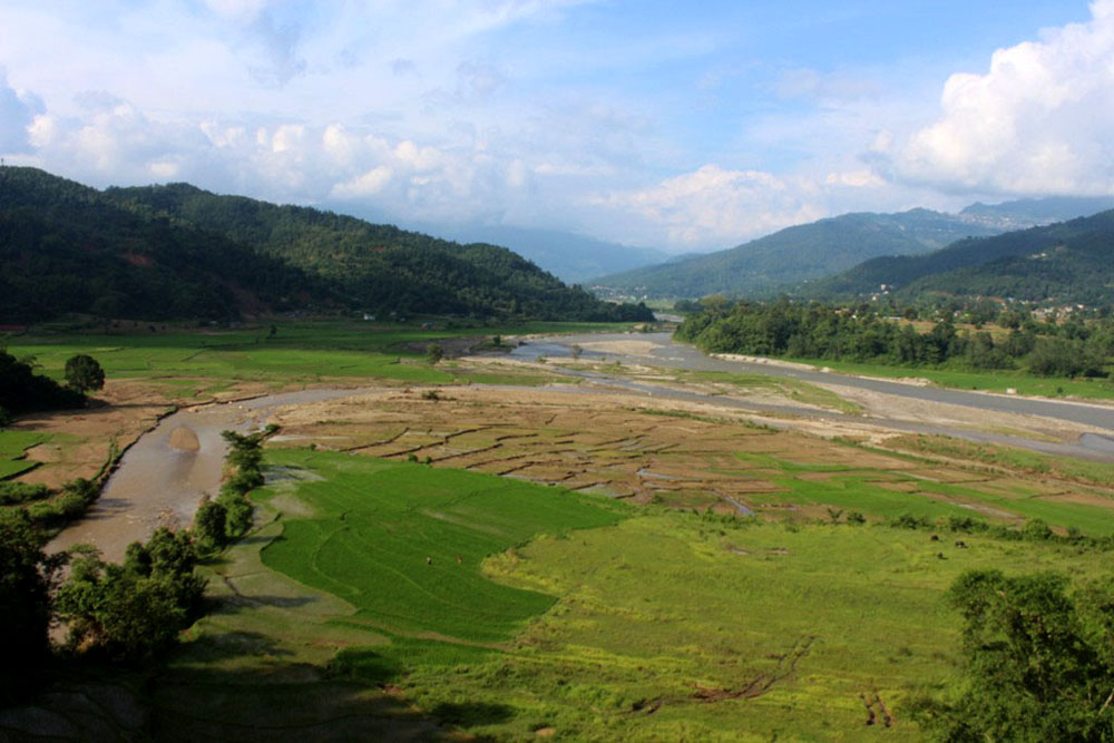 लोकमार्गबाट झरेको बाढीले बगर भयो खेत