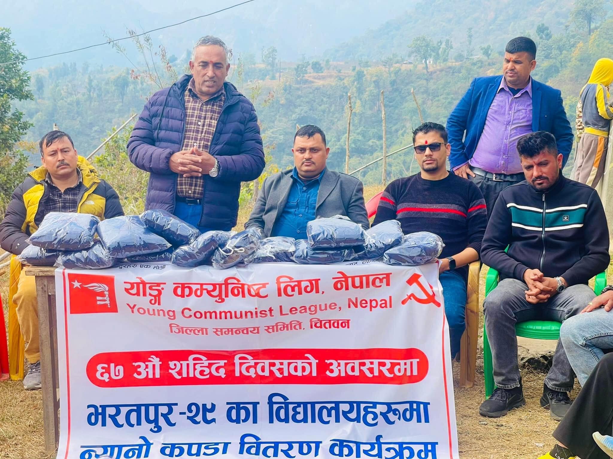शहिद दिवसमा विद्यार्थीलाई वाईसीएल चितवनको न्यानो कपडा