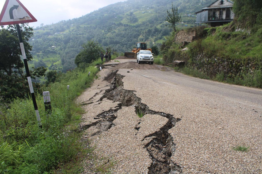 रुकुम पश्चिममा मध्यपहाडी सडक भासियो