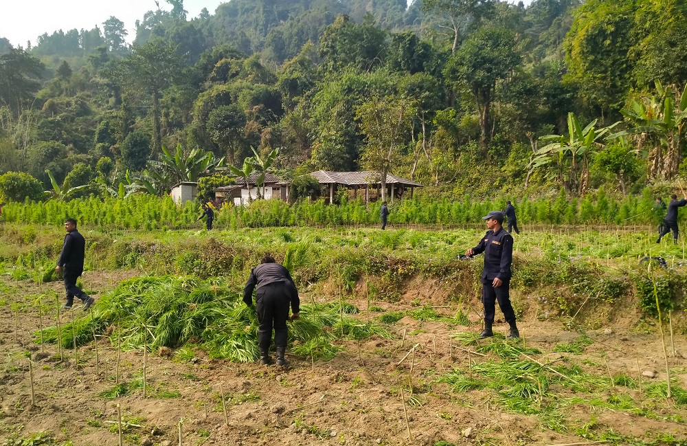 सर्लाही प्रहरीले फाँड्यो १७ बिघाको गाँजा