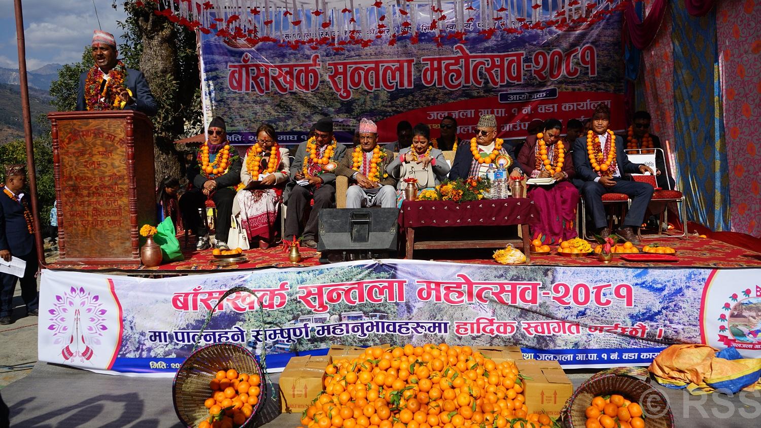 बाँसखर्कमा सुन्तला महोत्सव : अतिथिलाई सुन्तलाकै माला,