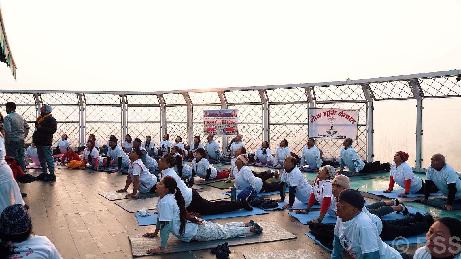 पहिलोपटक‘स्काइवाक टावर’मा योगाभ्यास