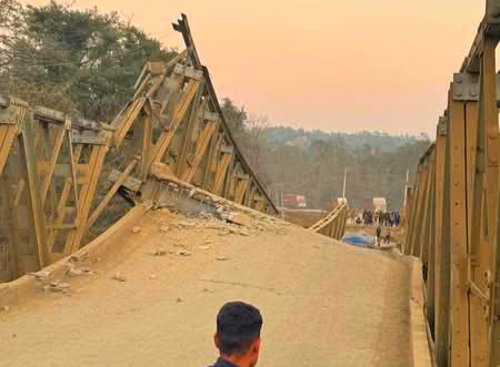 विनयी खोलाको पुल भासिँदा पूर्वपश्चिम राजमार्ग अवरूद्ध