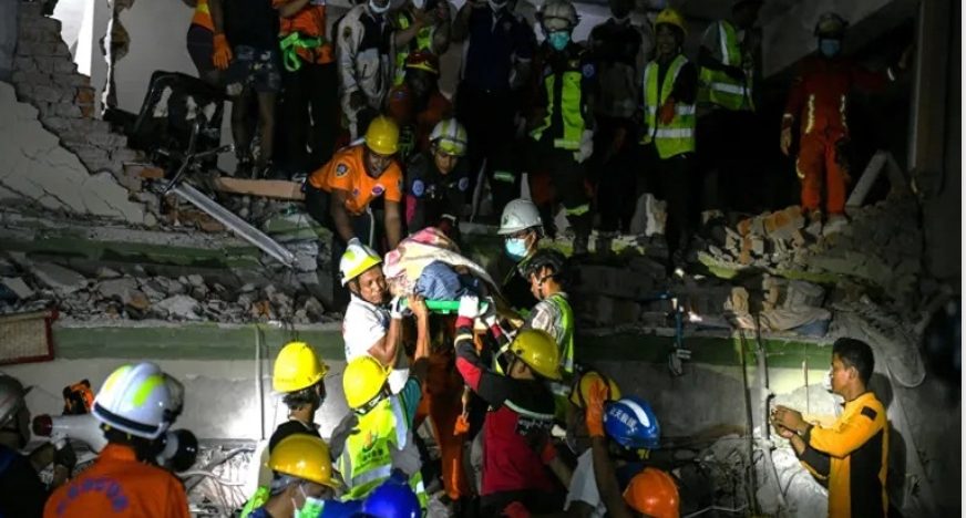 म्यानमारमा भूकम्पबाट भत्किएको घरमा पुरिएका चार जनाको