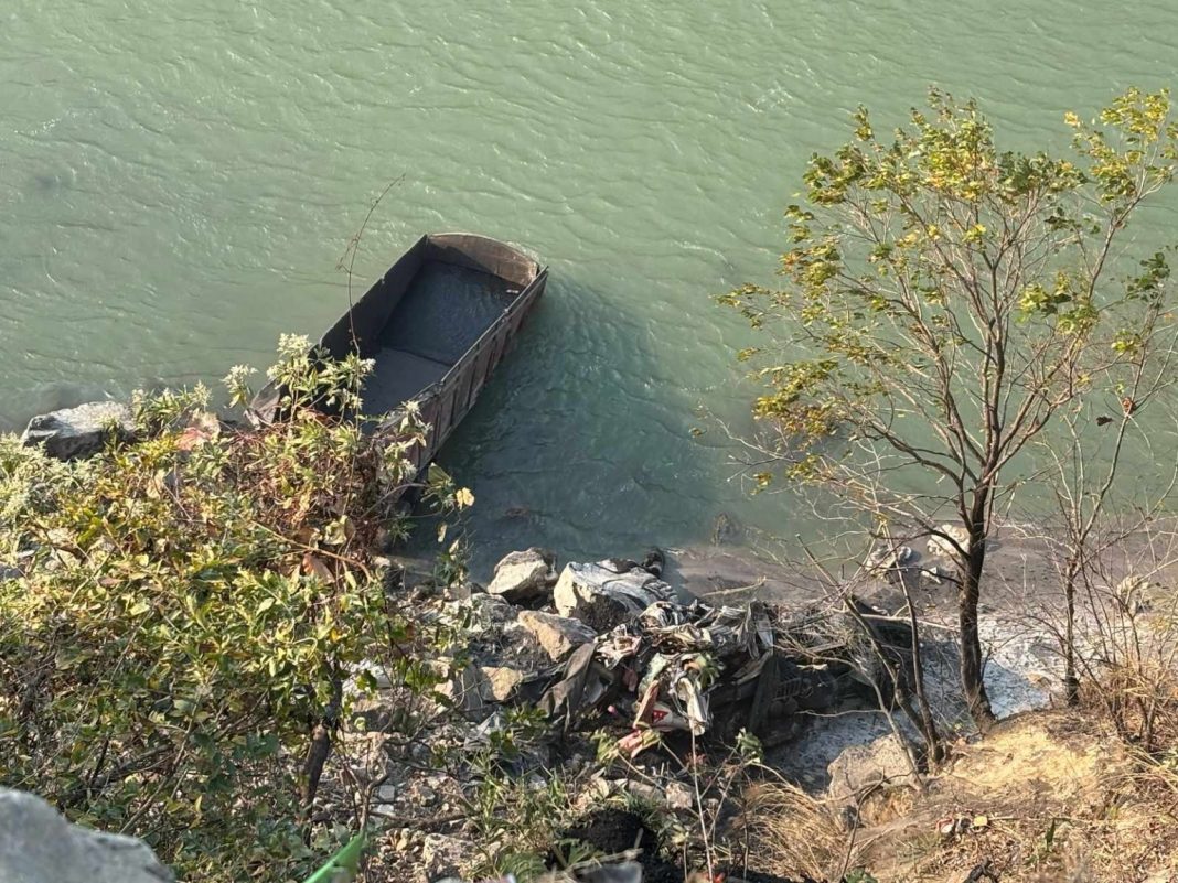 कोइला बोकेको ट्रक त्रिशुली नदीमा खस्दा चालकको