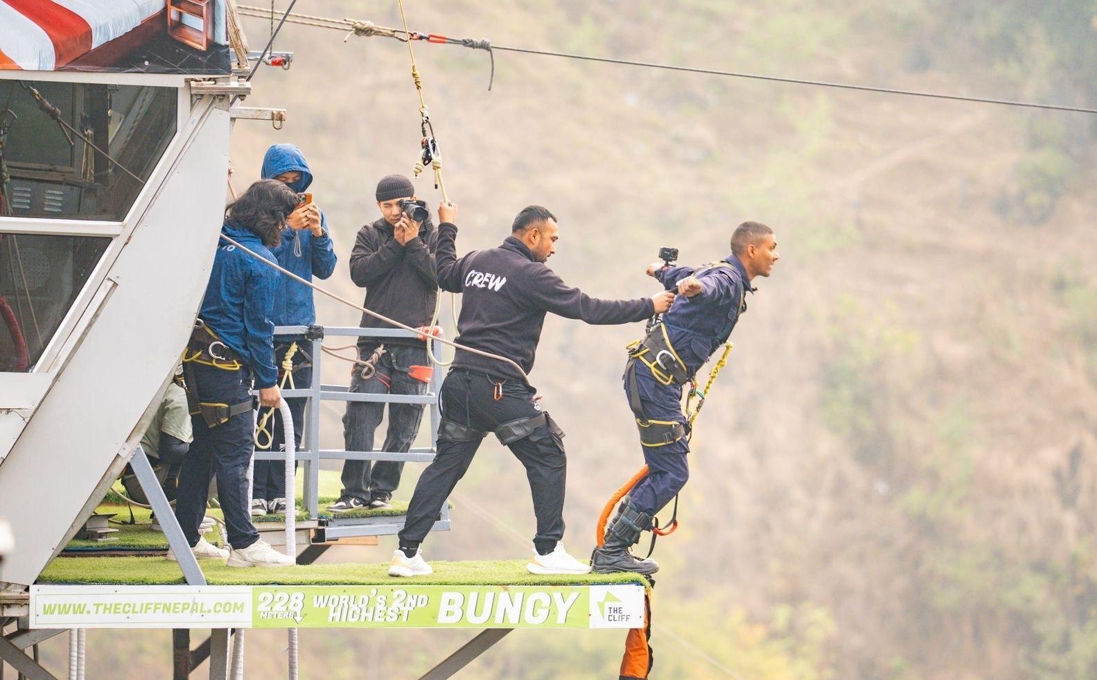 द क्लिफमा प्रहरीको ‘कमाण्डो’का प्रशिक्षार्थीको बञ्जी जम्प