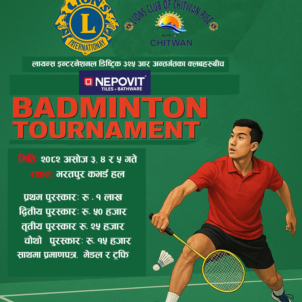 चितवन राईजद्वारा ब्याडमिन्टन प्रतियोगिता आयोजना, सहभागी हुन