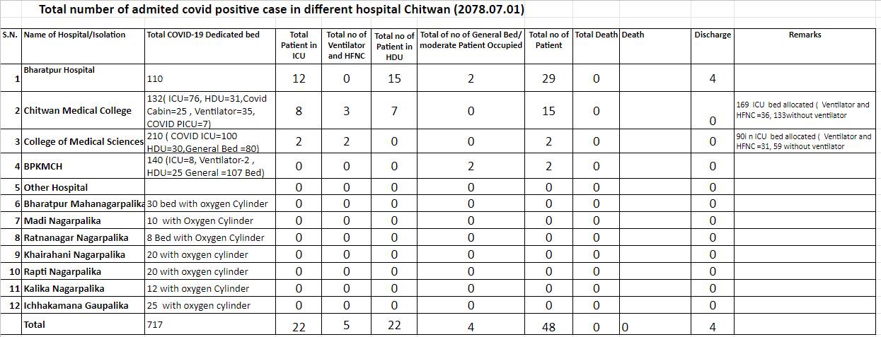 चितवनका अस्पतालमा ४८ जना संक्रमित उपचाररत