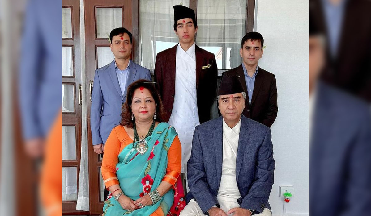 प्रधानमन्त्री देउवाले परिवारसँग लगाए टीका