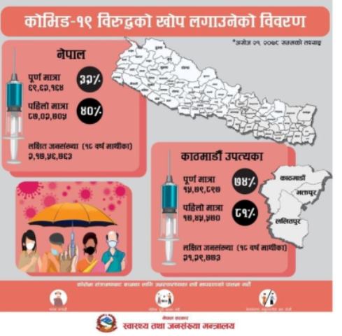 देशभर ३२ प्रतिशतले लगाए कोरोना विरुद्धको खोप