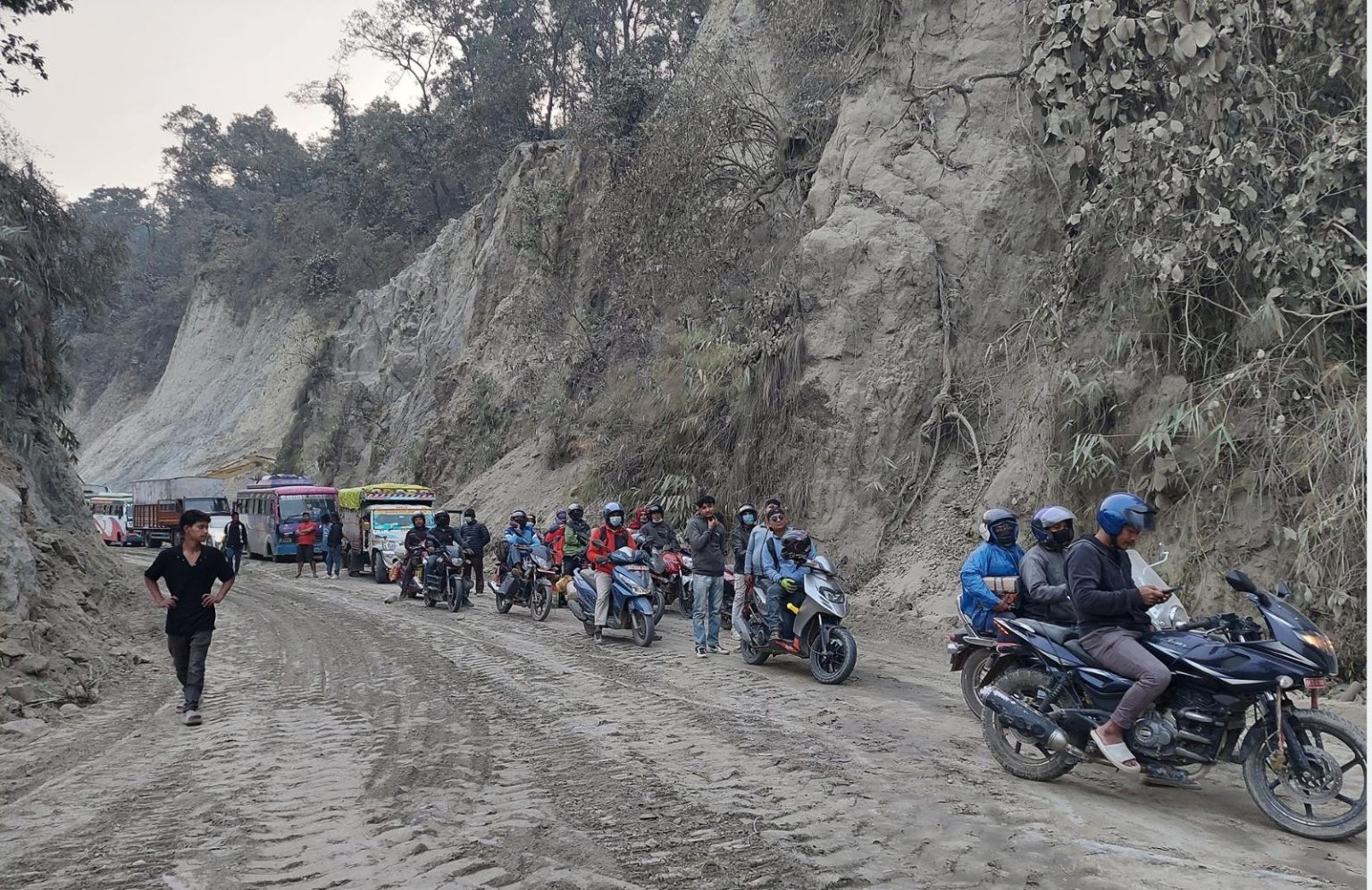 बेमौसमी वर्षा : दाउन्नेमा सडक अवरुद्ध