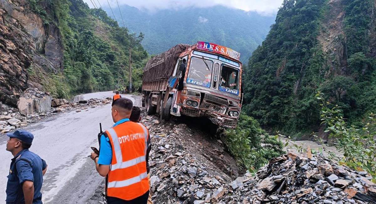 तुइनखोलामा सुक्खा पहिराे खसेपछि नारायणगढ–मुग्लिन सडकखण्ड अवरुद्ध