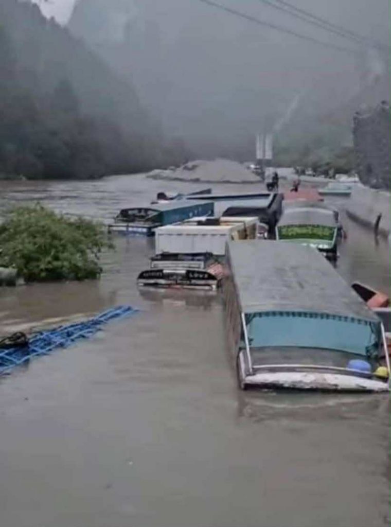 रसुवामा बाढीको प्रकोप : सयौँ इभी गाडी