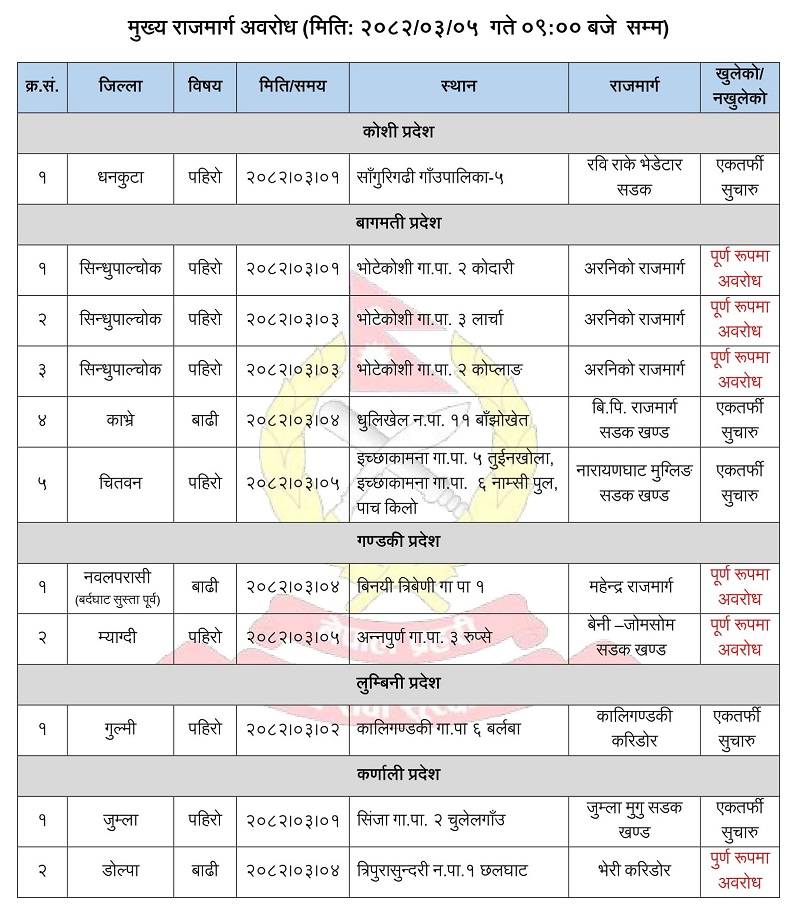 नारायणघाट–बुटबल सडक अवरुद्ध : वैकल्पिक मार्ग प्रयोग