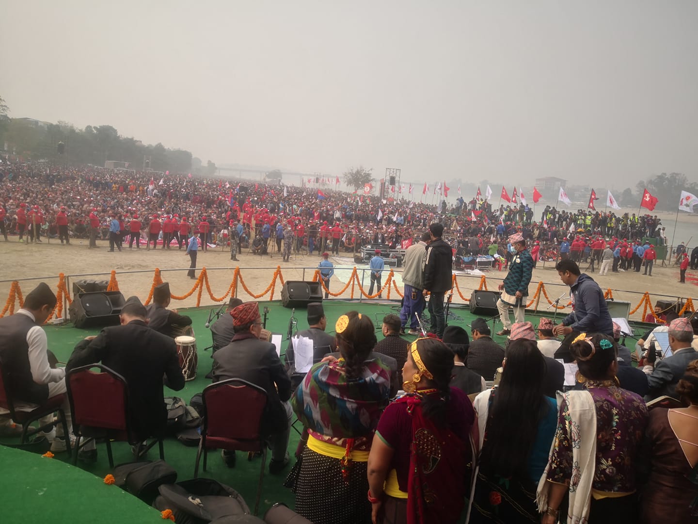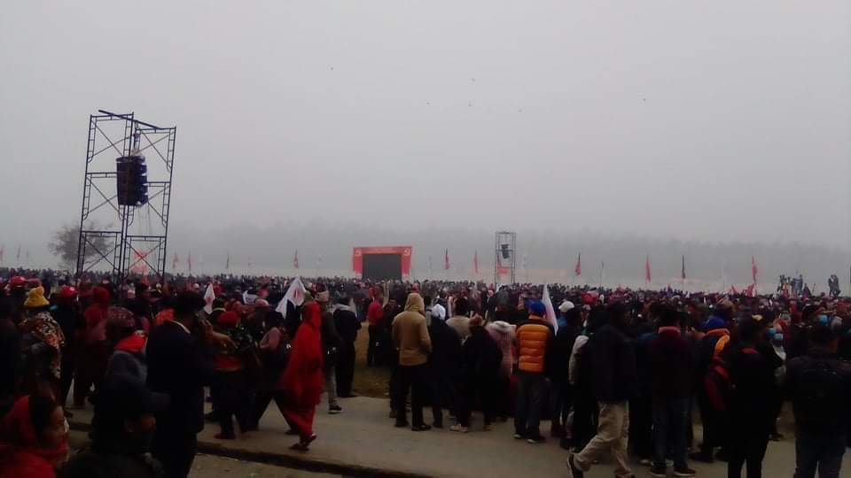 एमाले महाधिवेशन : बिहानै भरियो नारायणी नदीकिनार