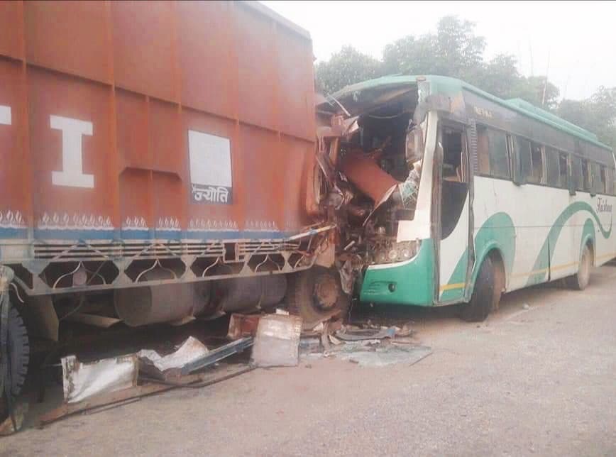 बस र ट्रक एक आपसमा ठोक्किँदा २