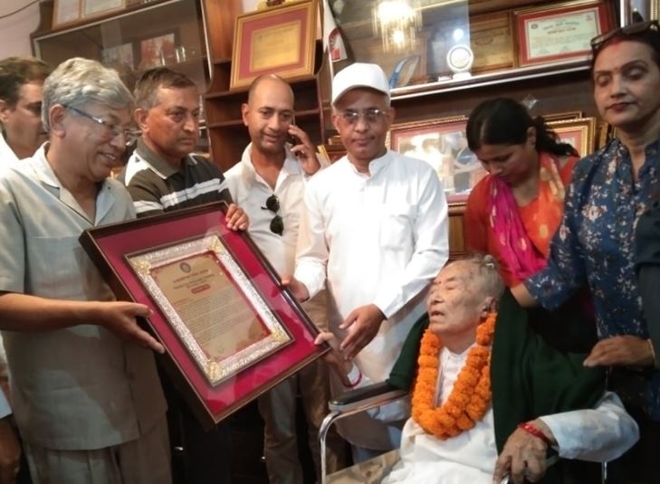 मैयादेवीलाई निवासमै लोकतान्त्रिक योद्धा सम्मान