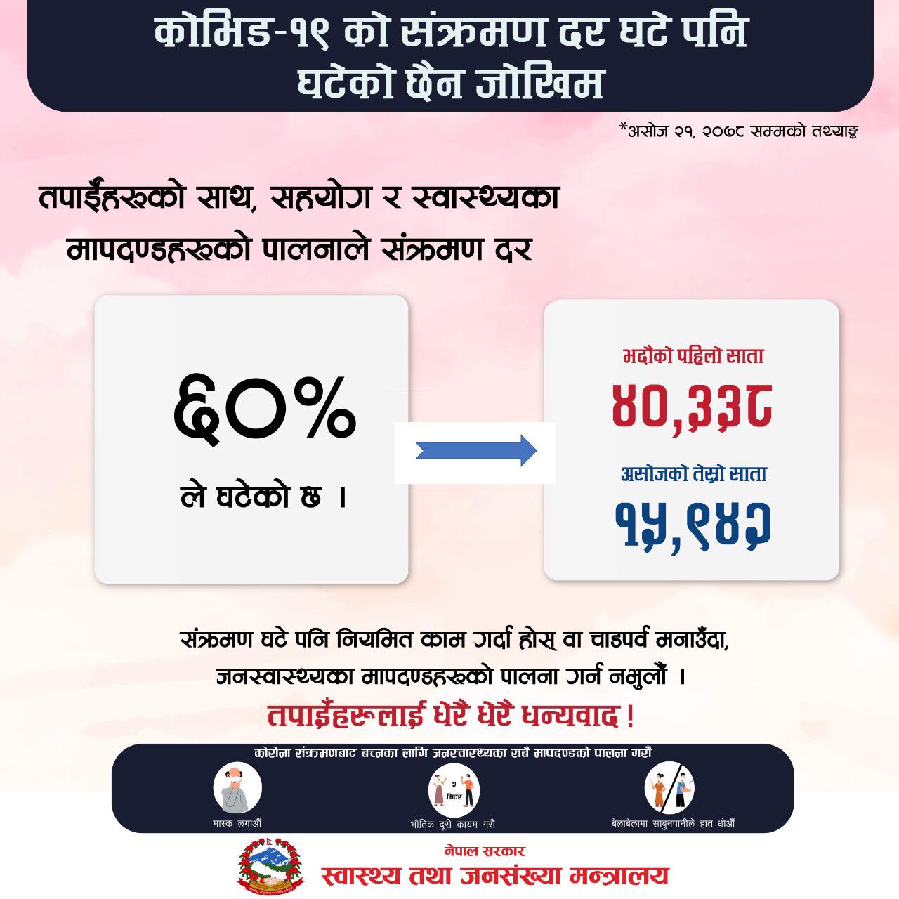 नेपालमा कोरोना सङ्क्रमण ६० प्रतिशतले घट्यो