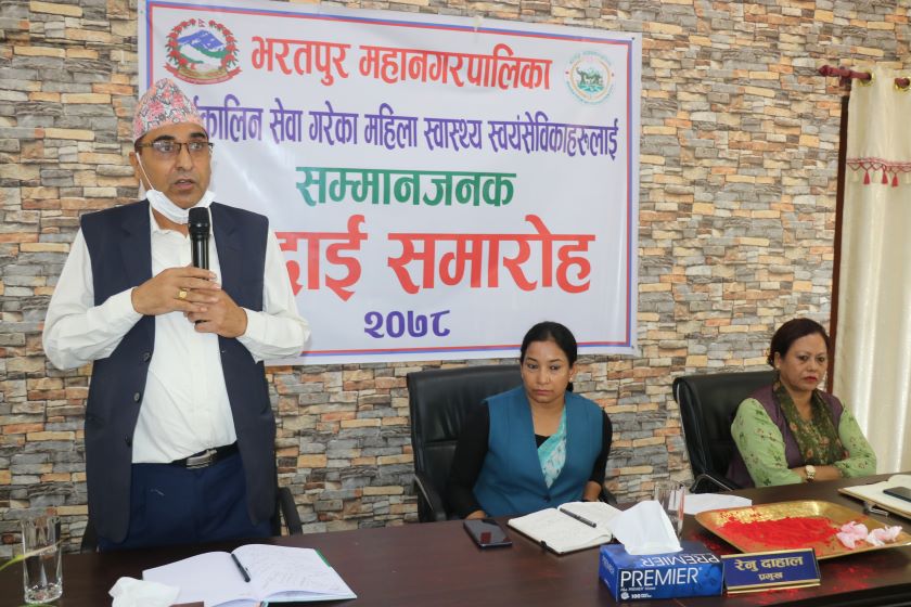 भरतपुर महानगरका ६० बर्षका स्वास्थ्य स्वयंसेविकालाई नगद