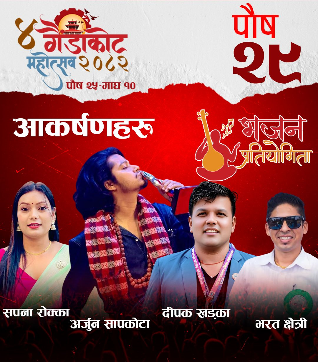 चौथो गैँडाकोट महोत्सव : आज अर्जुन सापकोटासहितको