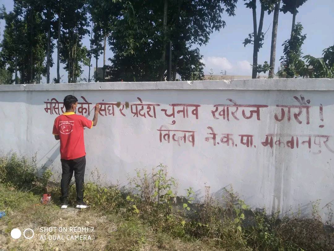 निर्वाचनको विरोधमा भित्ते लेखन गर्दै विप्लव नेकपा
