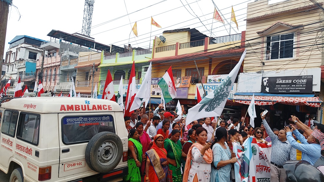 मनोनयन दर्ताको र्यालीले एम्बुलेन्सलाई अवरोध