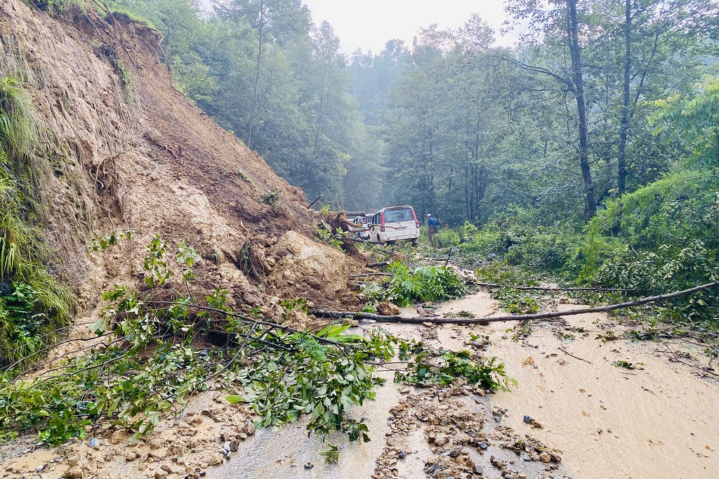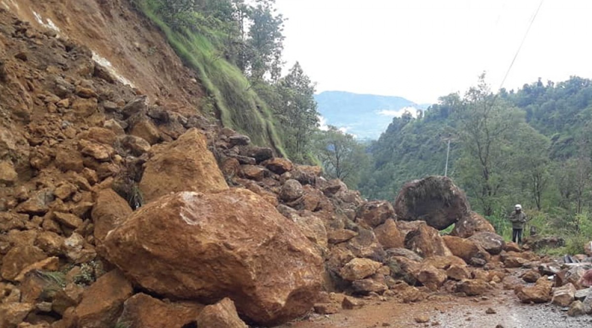 पृथ्वीराजमार्गमा पहिरो खस्दा दुई स्थानमा अवरुद्ध
