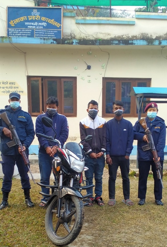 सर्लाहीमा चाेरीकाे माेटरसाइकलसहित तीन जना पक्राउ