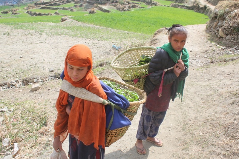 मुगुका विद्यार्थी साग बेचेर पढाइ खर्च जुटाउँदै