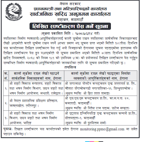 तीन ठेकेदारसँग लिखित स्पष्टिकरण माग : कालो