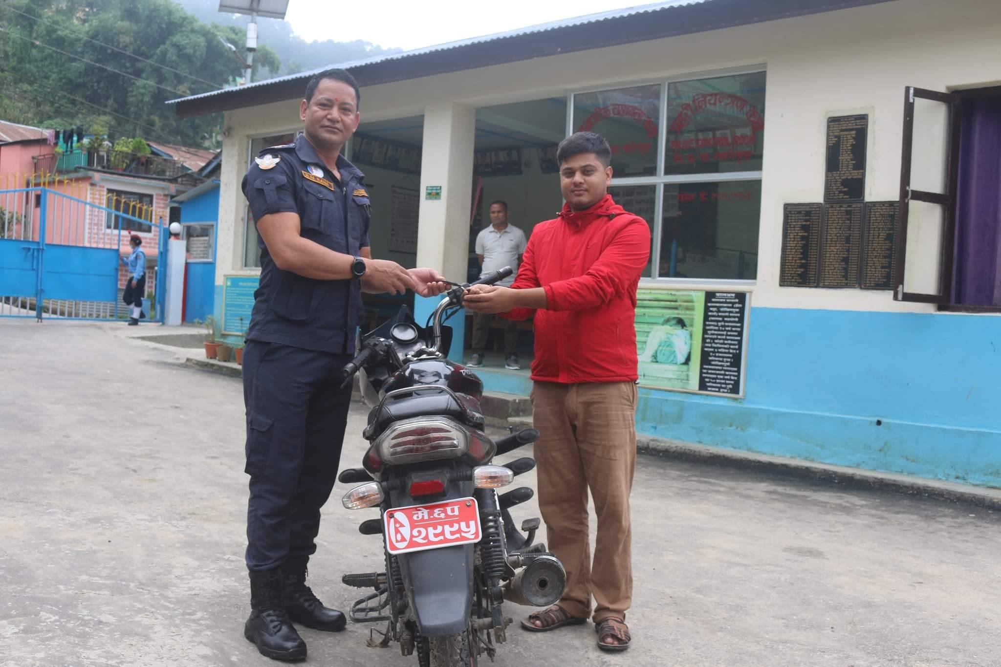 हराएको मोटरसाइकल फेला पारेर प्रहरीले बुझायो सम्बन्धित
