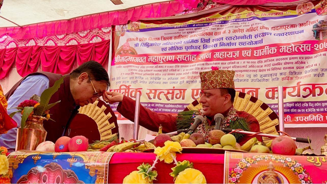 धार्मिक महोत्सवमा श्रेष्ठले दिए गणेशको मूर्ति, लिए