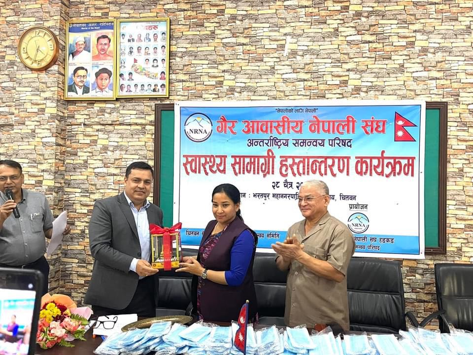 एनआरएनए हङकङले भरतपुर महानगरलाई दियो स्वास्थ्य सामग्री
