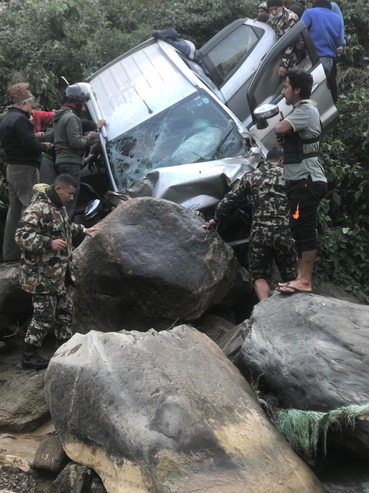 तनहुँबाट काठमाडौँ गएको स्कोरपियो धादिङमा दुर्घटना, चार
