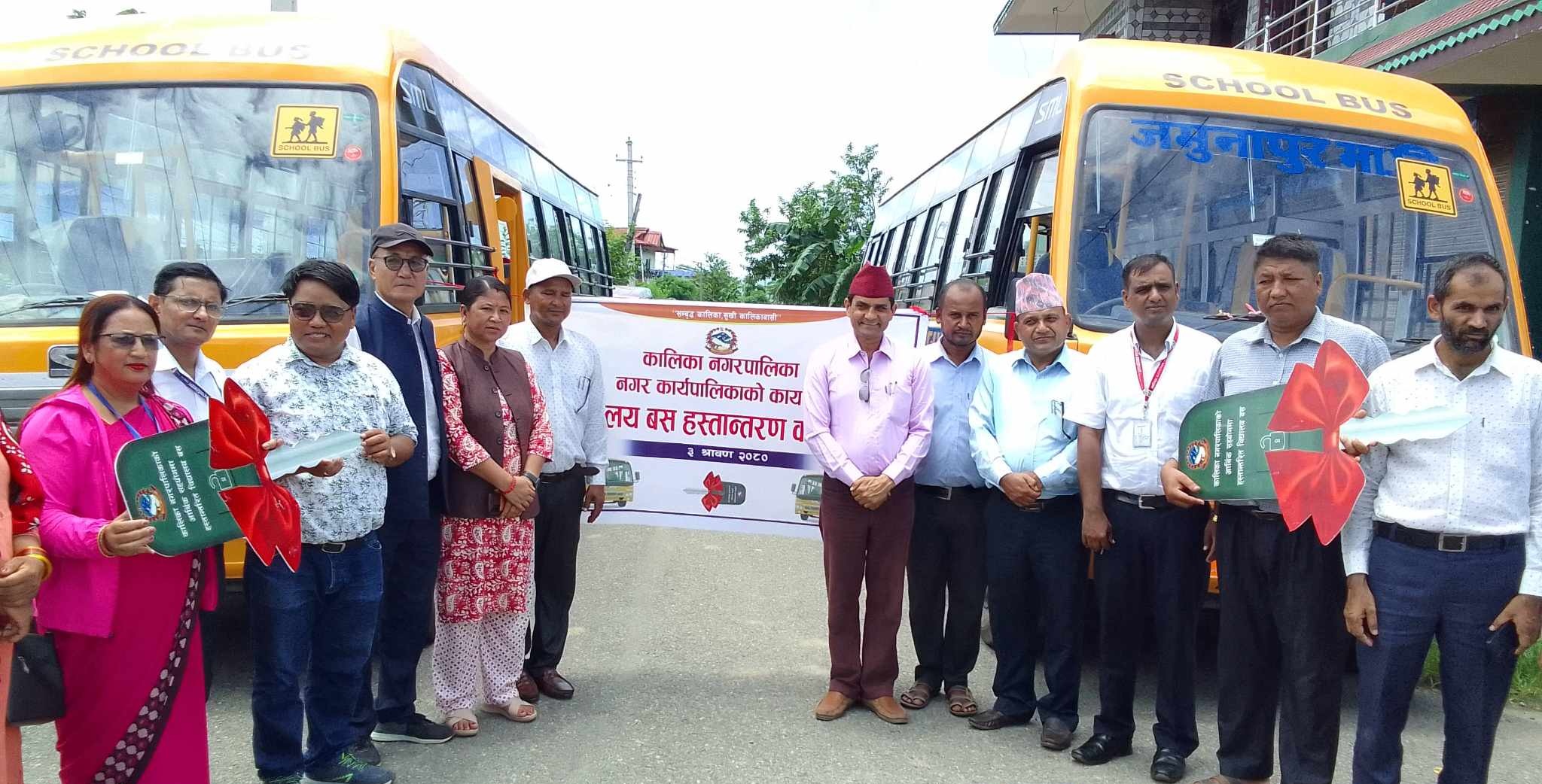 कालिकाका दुई सामुदायिक विद्यालयलाई स्कुल बस हस्तान्तरण