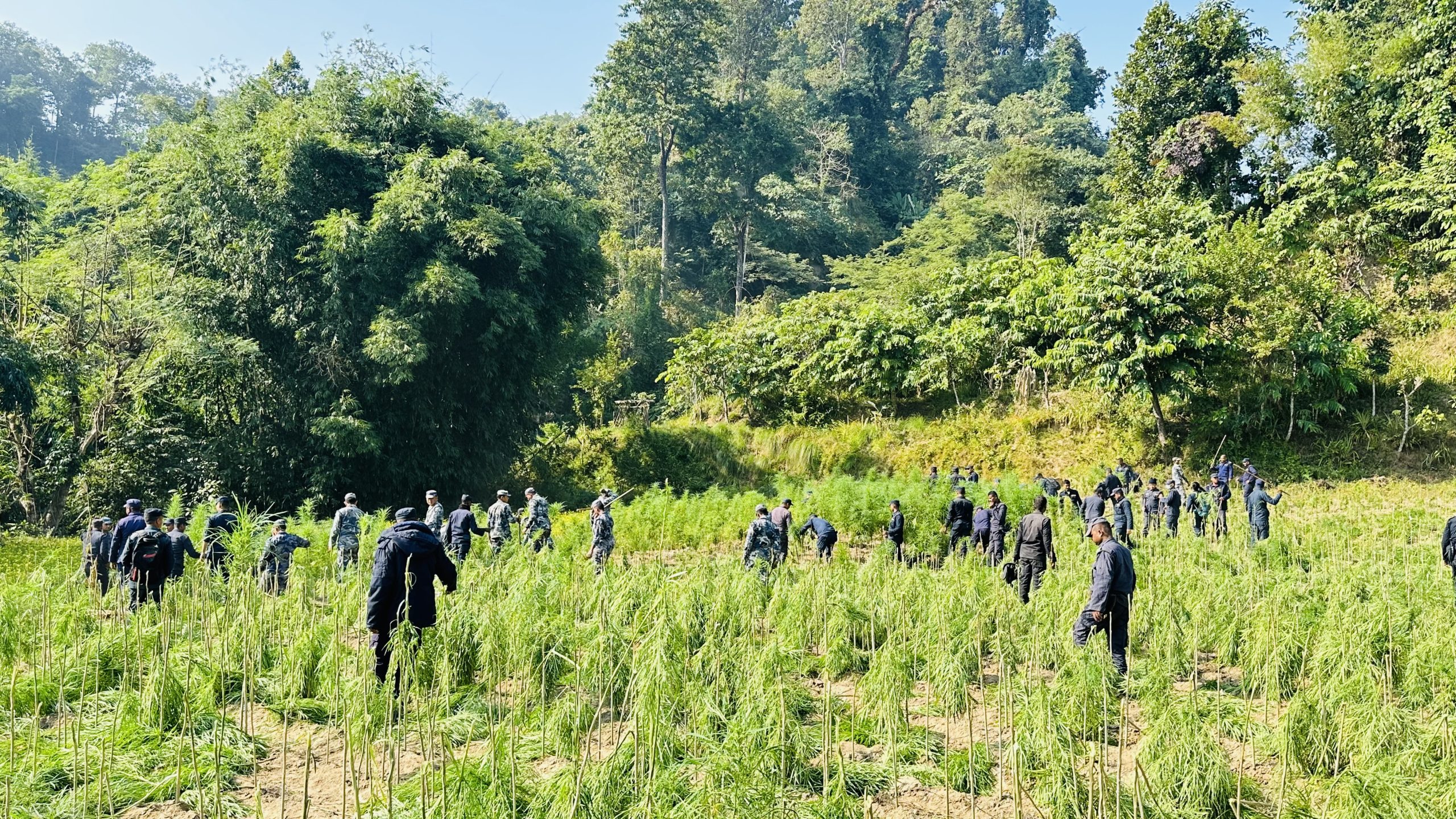 चितवनका ५५ बिघामा लगाइएको गाँजा खेती प्रहरीले