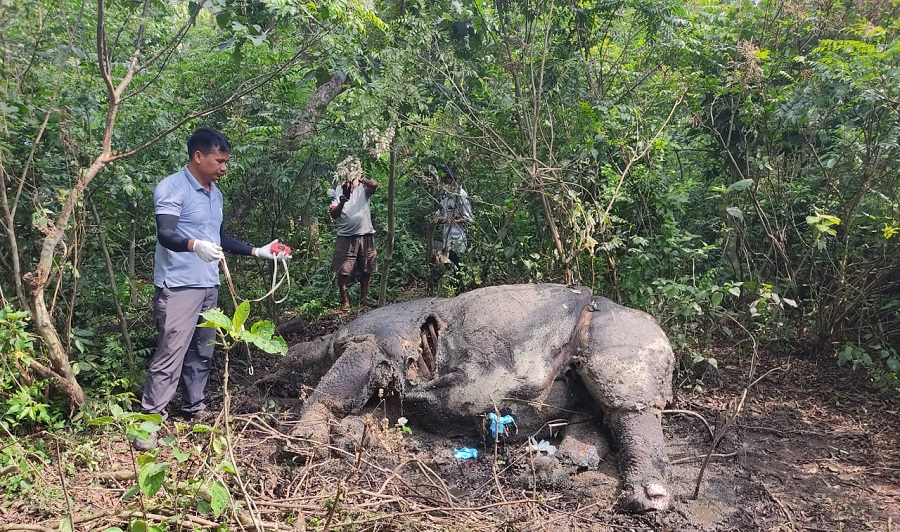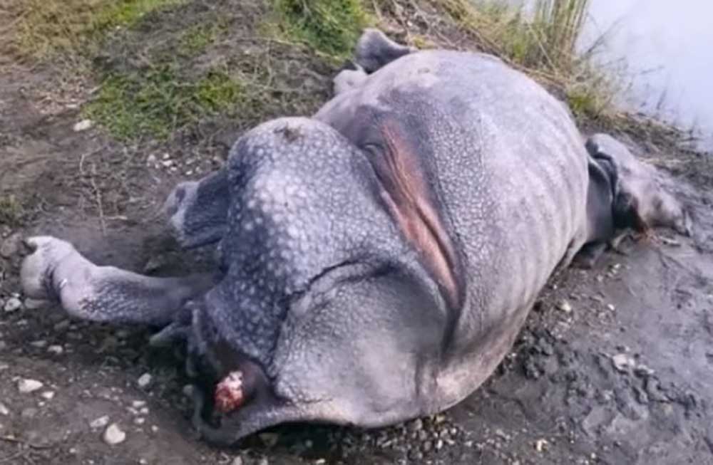 चतुर्मुखी सामुदायिक वनमा गैडा मृत